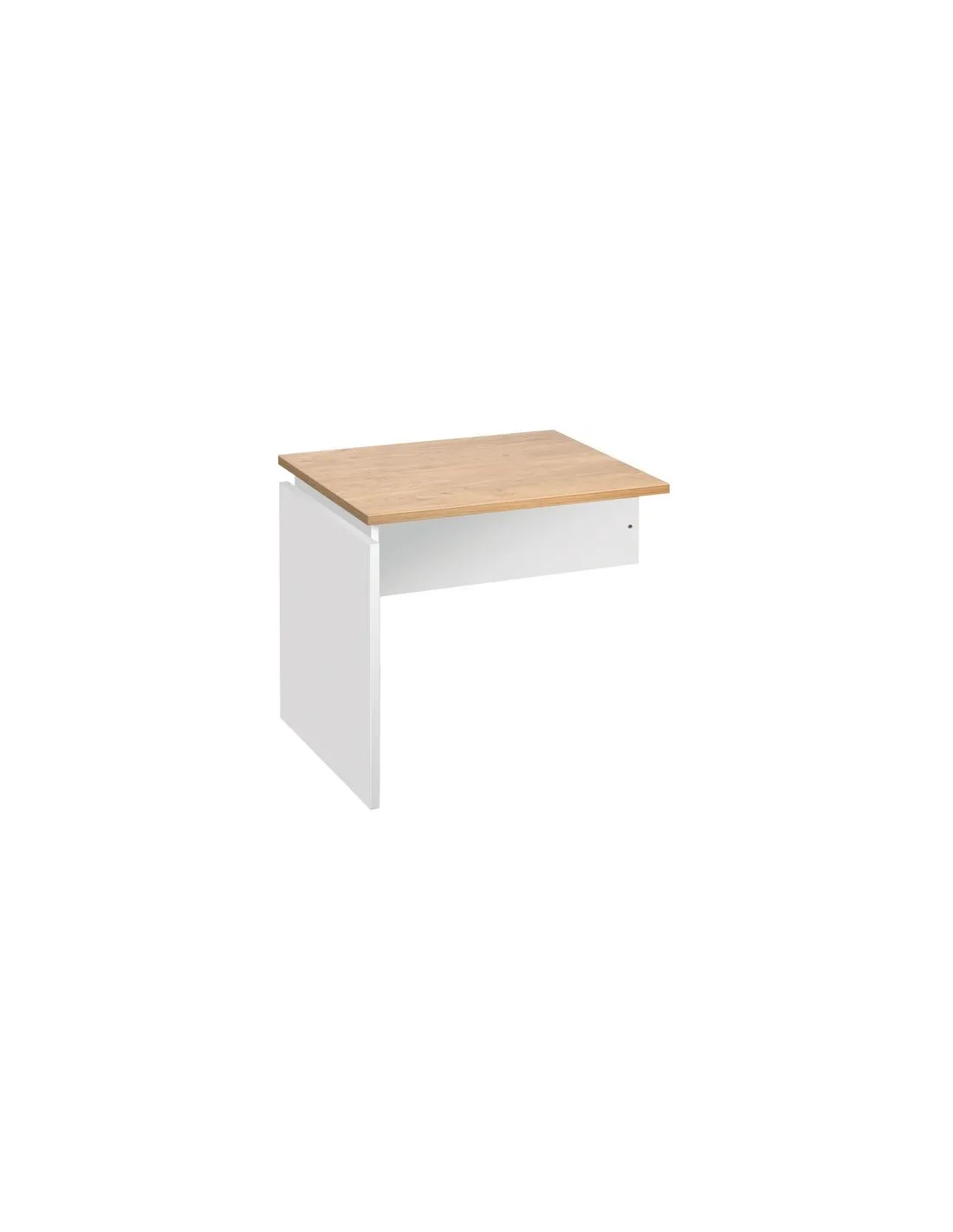 Estructura: tablero paneles de particulas con revestimiento melaminado grosor 25 mm. Cantos rectos antichoque grosor 2mm. Pata recta con lateral interior que permite la regulación del tablero en altura. Calzos de regulación para los desniveles de suelo. Vela de fondo. Medidas: An 80 x Fon 60 x Alt 72,5 ; 75,5 o 82 cm.Ala mesa intuitiv roble claro