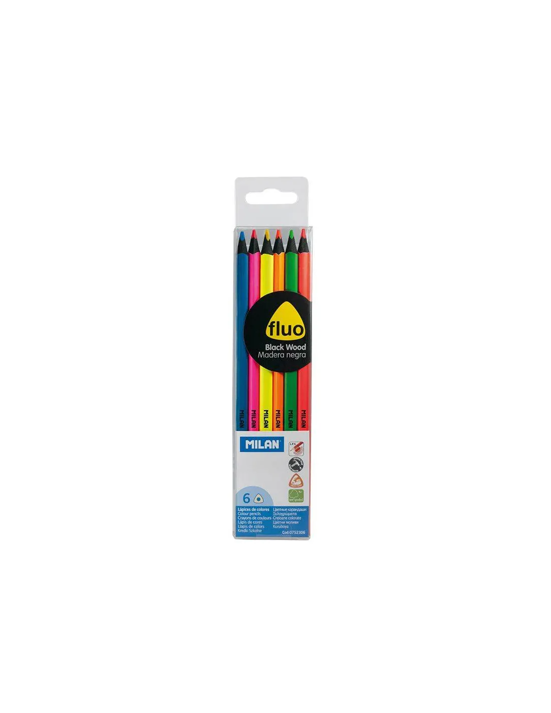 Lápices bicolores con mina de 2,9 mm Ø. 6 lápices, 12 colores (colores fluo + colores metalizados). Forma triangular ergonómica. La mina ofrece un trazo uniforme y es resistente a la rotura, gracias al sistema LPS (Lead Protection System) que protege la mina gracias a su adhesión con la madera. Madera procedente de plantaciones sostenibles. Cada color cuenta con un nombre propio.