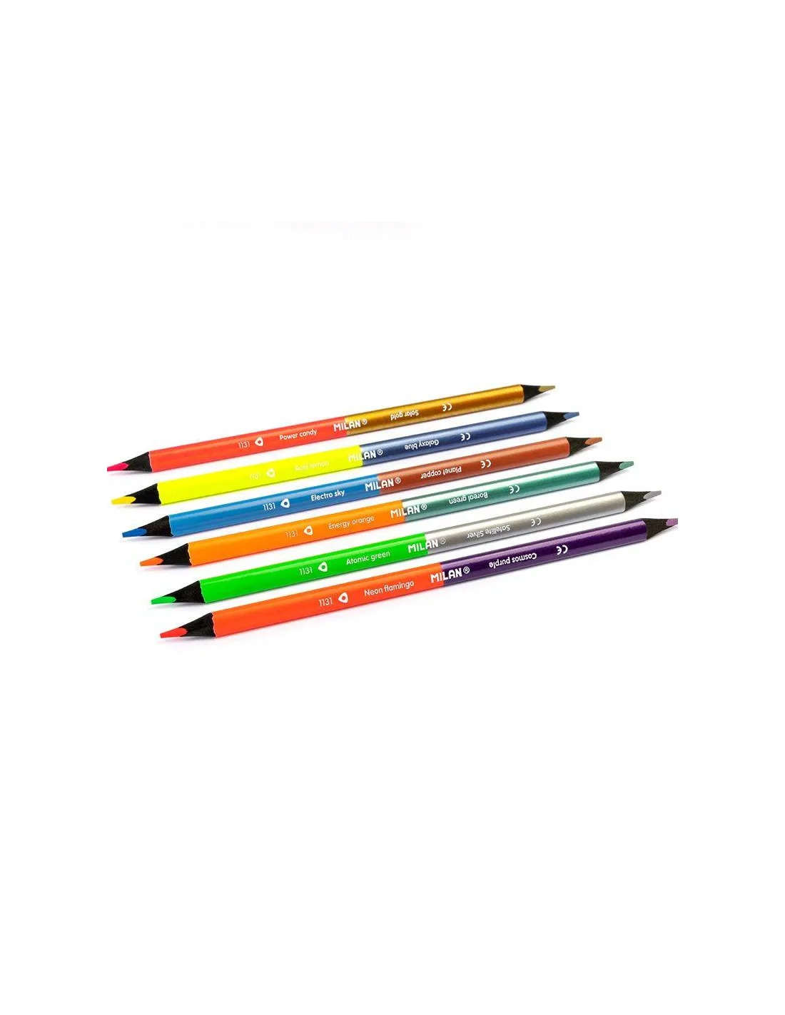 Caja 6 lapices bicolor fluor metal Milan