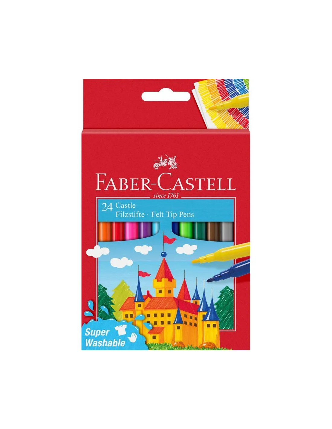 Rotuladores escolares Faber castell caja roja con tinta segura para niños a base de agua fácilmente lavables de la piel con agua y jabón.