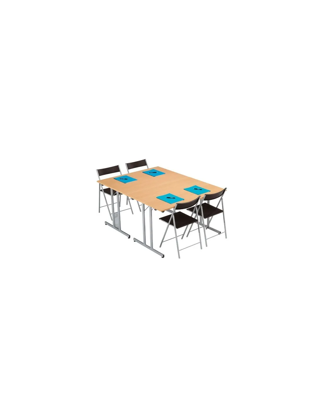 Mesa plegable multiusos ideal para todo tipo de actividades , se puede usar como mesa de reuniones o auxiliar . Mesa plegable y apilable con fijación de seguridad en posición abierta y cerrada. Tablero de panel de partículas melaminadas con tratamiento antirreflejos, grosor 19 mm. Cantos PVC antichoque, grosor 3 mm. Patas de tubo metálico lacado epoxi, sección 35 x 20 mm. Calzos de regulación en altura para compensar desniveles del suelo, al ser plegable se pude guardar sin que prácticamente ocupe espacio , Grosor plegada: 9,5 cm.