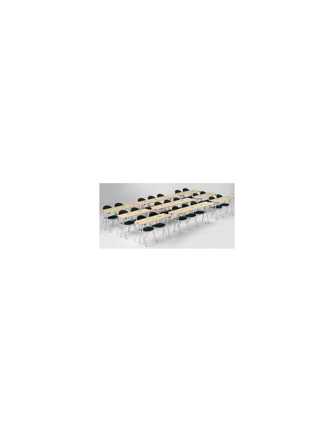 Mesa de formación plegable de gran estabilidad y fácil de estocar una vez plegada. Tablero paneles de partículas melaminadas certificados PEFC/ 10-4-8, grosor 19 mm con cantos PVC redondeados. Patas plegables en tubo metal acabado epoxi Ø 30 mm con calzos de estabilización. Medidas de la mesa : largo 120 cm x Alto 75 x Fondo 40 cm. Entregadas montadas.