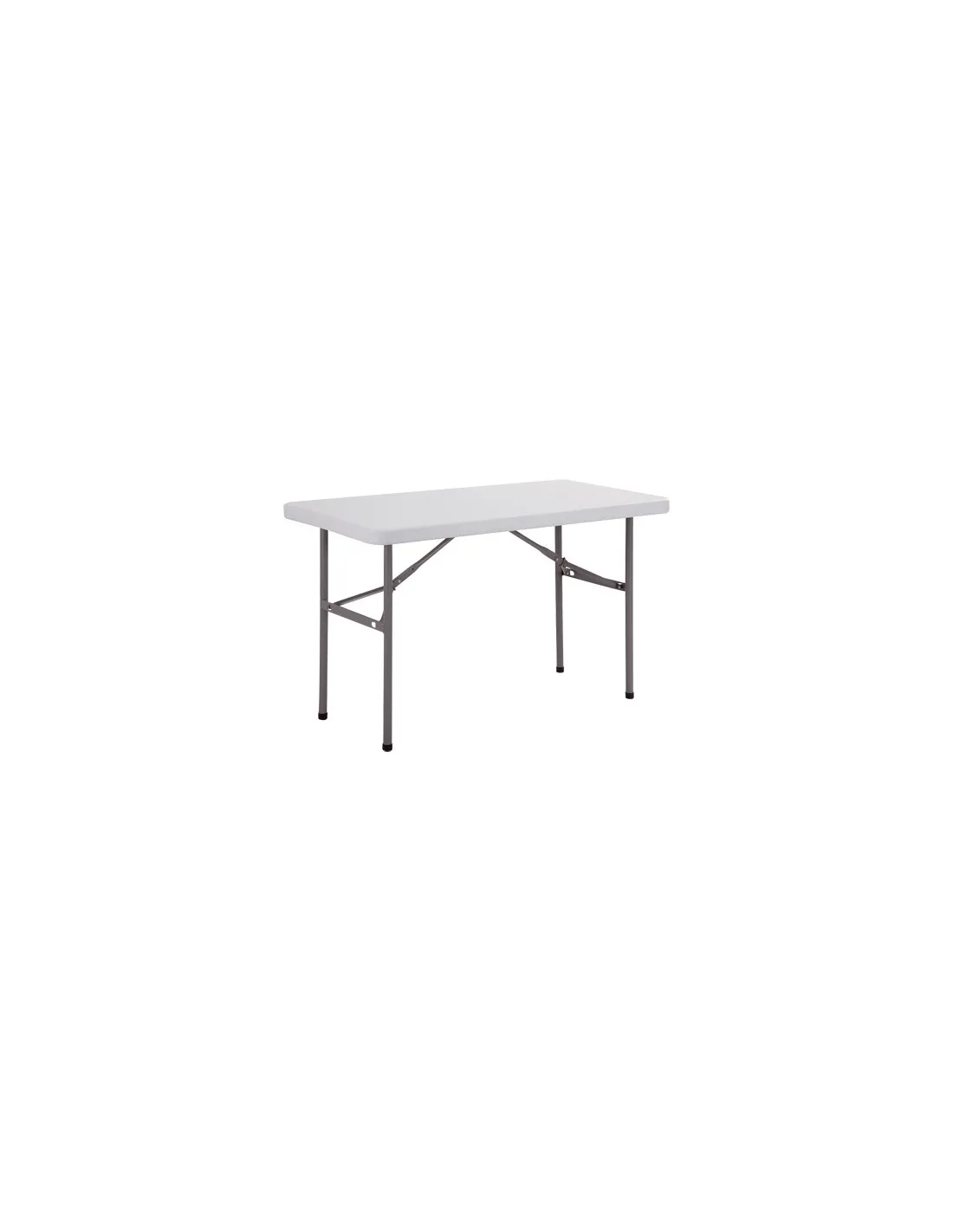 Facil limpieza y ultra resistente a los golpes y las rayaduras. Las patas se encastran en el tablero para que se apilen perfectamente. Estructura: Tablero polietileno alta densidad, grosor 50 mm, color blanco granulado. Patas plegables tubo metal lacado epoxi gris acabado granulado, Ø 28 mm. Barras longitudinales de refuerzo metal 30 x15 mm. Sistema de seguridad anti plegable de los pies por anillo corredero. Material tratado anti UV para evitar la degradación y la decoloración.Medidas: An 152 x fon 76 x Alt 74 cm. Peso:12,8 kg.Mesa Polivalente Plegable 152 x 76 c