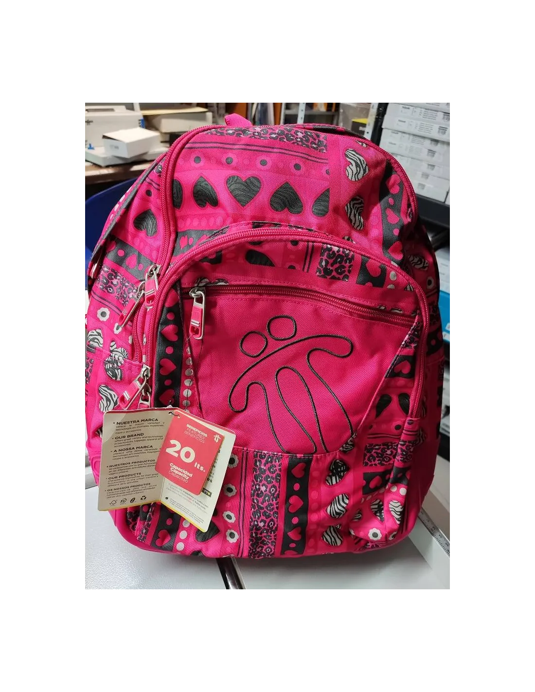Especificaciones Características: Organizador con llavero extraíble Espaldar ergonómico Flujo de aire Manija ergonómica Material: Exterior: Poliester 100% Forro: Poliester 100% Dimensiones: 44.00 x 33.00 x 13.50 Material: Exterior: Poliester 100% Forro: Poliester 100% Compartimentos adicionales: Bolsillo para alimentos Bolsillo para correas posteriores Correas: Correas en forma de S