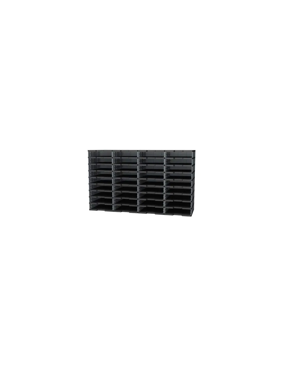 Modulo organizador 36 casillas talla normal gris. Para documentos de un formato de hasta 24 x 32 cm. En plástico de poliestireno reciclable. con la certificación Angel Azul. Exterior gris. interior negro. Se entrega desmontado. Estándar de dimensiones externas: Alt. 8.9 x An. 28.8 x Fon. 35.4 cm y útiles: Alt 5.9 x An 25.6 x Fon 34 cm.Para documentos de un formato de hasta 24 x 32 cm. En plástico de poliestireno reciclable. con la certificación Angel Azul. Exterior gris. interior negro