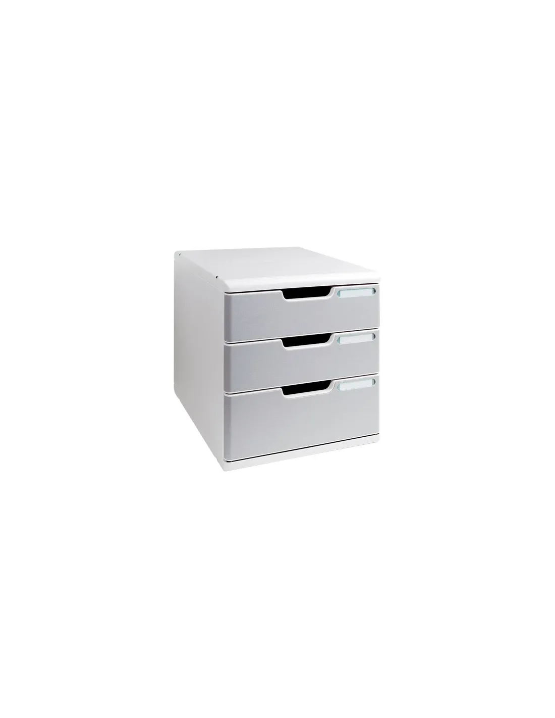 Modulo apilable gris 3 cajones gris módulos de clasificación apilables y ajustables a través de clips, para crear verdaderas paredes de clasificación. Para documentos hasta formato 34x32 cm 4 alturas útiles de cajón de 2,6 a 11 cm. Cajones intercambiables suministrados con portaetiquetas y etiquetas. Cuerpo gris claro con esquinas redondeadas. Fabricado en poliestireno, medidas de un módulo Alt. 32 x An. 29 xFon.35Modulo apilable gris 3 cajones gris