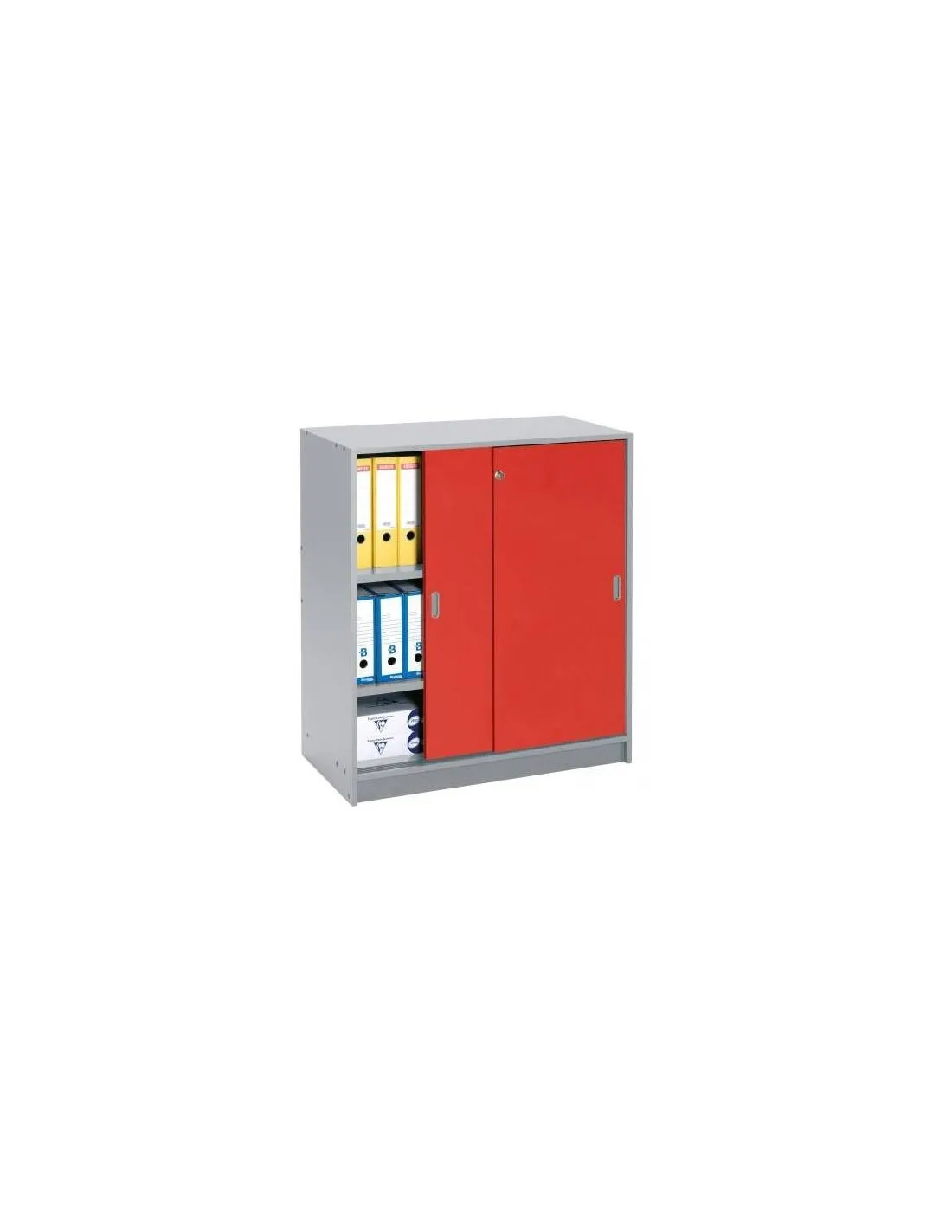 Armario de oficina de madera con puertas correderas, ideales para darle a tu oficina una estética moderna a precio economico