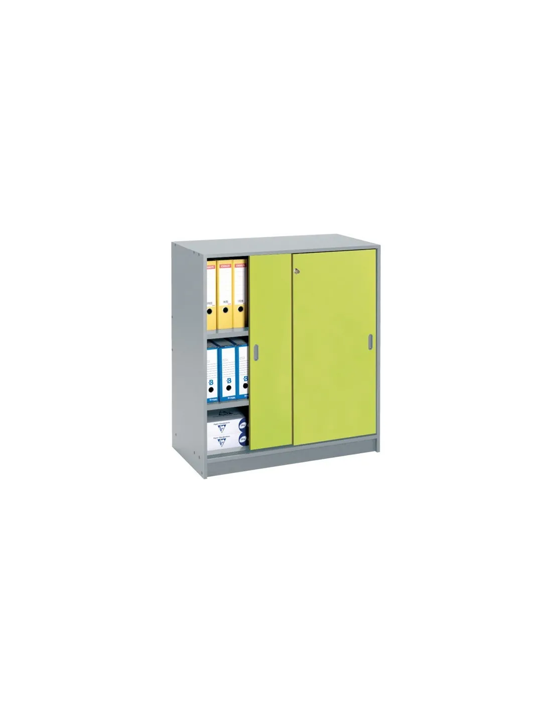 Estructura: paneles de partículas melaminadas acabado madera, grosor 16 mm. Zócalo que asegura una rigidez perfecta. Fondo grosor 3 mm. Cierre: puertas correderas con cerradura (2 llaves suministradas). Tiradores integrados.Armario de oficina de madera con puertas correderas, ideales para darle a tu oficina una estética moderna a precio economico