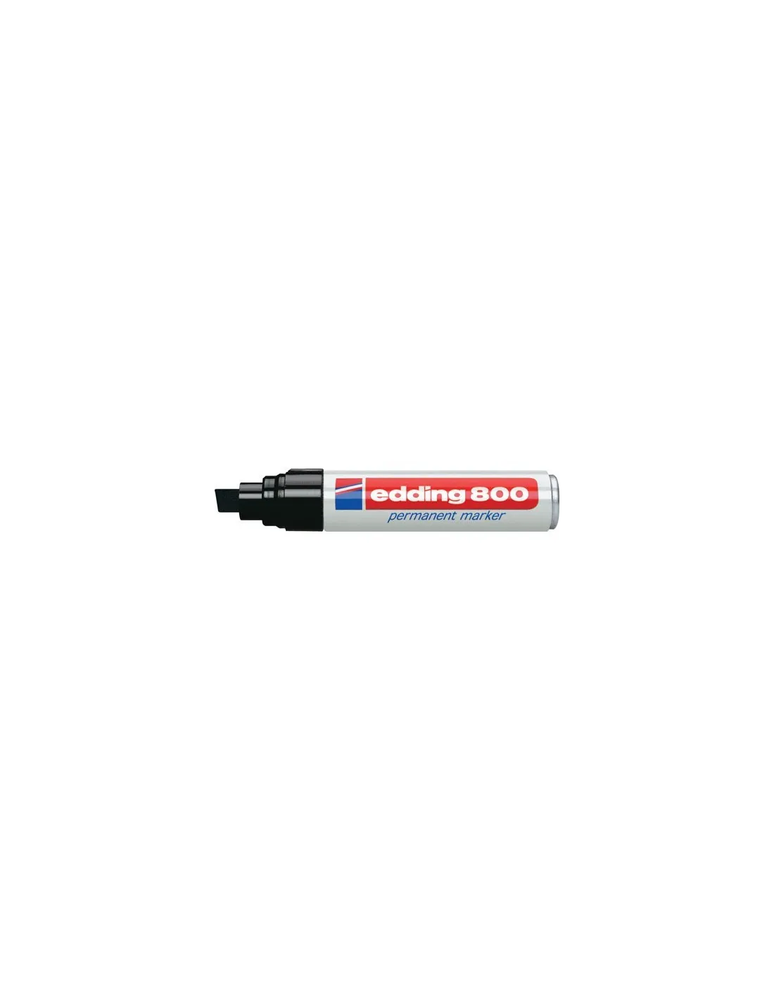 Trazo de 4 a 12 mm. Punta de fieltro biselada extragruesa. Especial para marcar metal, vidrio, plástico y casi cualquier otro tipo de material. Cuerpo metálico. Tinta permanente inodora. Recargable. Color: Negro.Marcador permanente punta biselada Edding 800 negro