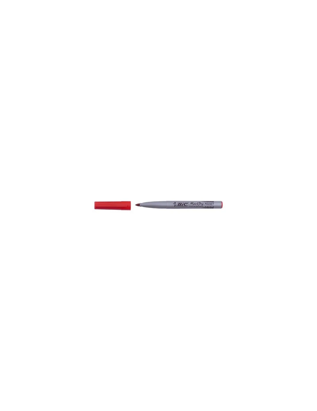 El más barato. Tinta indeleble base alcohol . resistencia a la luz, al calor y a la intemperie. Punta ojival. Modelo de bolsillo grosor de trazo 1 mm. Rojo.Marcador Bic bolsillo 1mm rojo