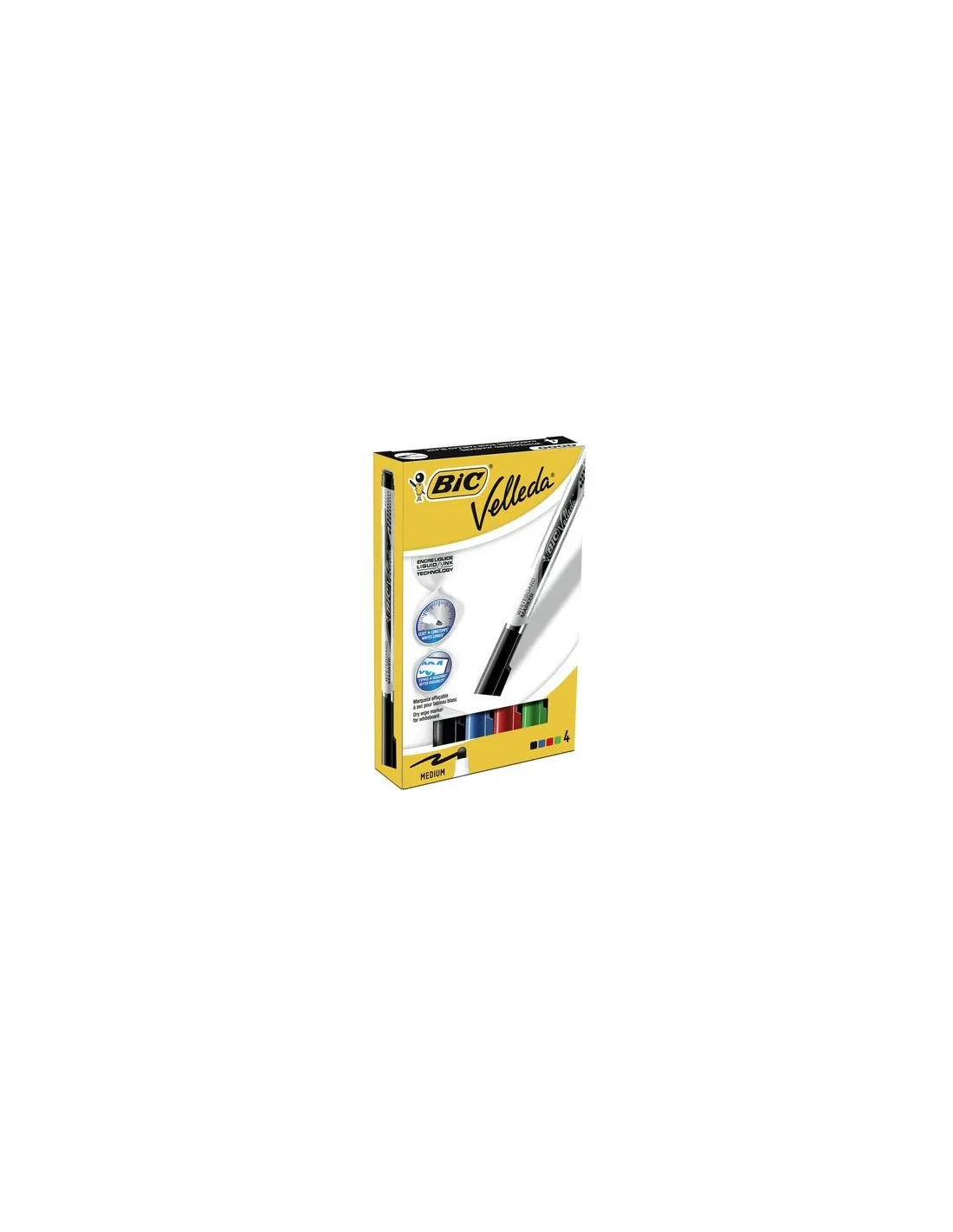 Estuche 4 rotuladores velleda tinta liquida clasicos.Estuche de 4 marcadores clásicos: negro. azul. rojo. verde. Rotulador para pizarra blanca con punta cónica mediaEstuche de 4 marcadores clásicos: negro. azul. rojo. verde. Rotulador para pizarra blanca con punta cónica media