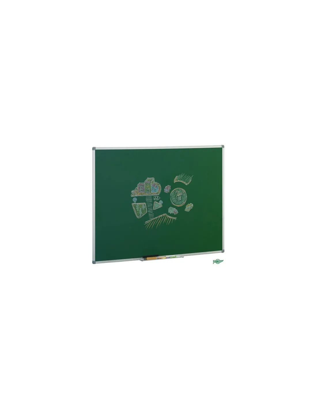 Garantía de la superficie 10 años. Con marco de aluminio y cantoneras decorativas. Superficie estratificada verde mate antireflectante. Suministrada con cajetín de aluminio de 40 cm y elementos de fijación. 122x244 cm.Pizarra verde 122x244cm