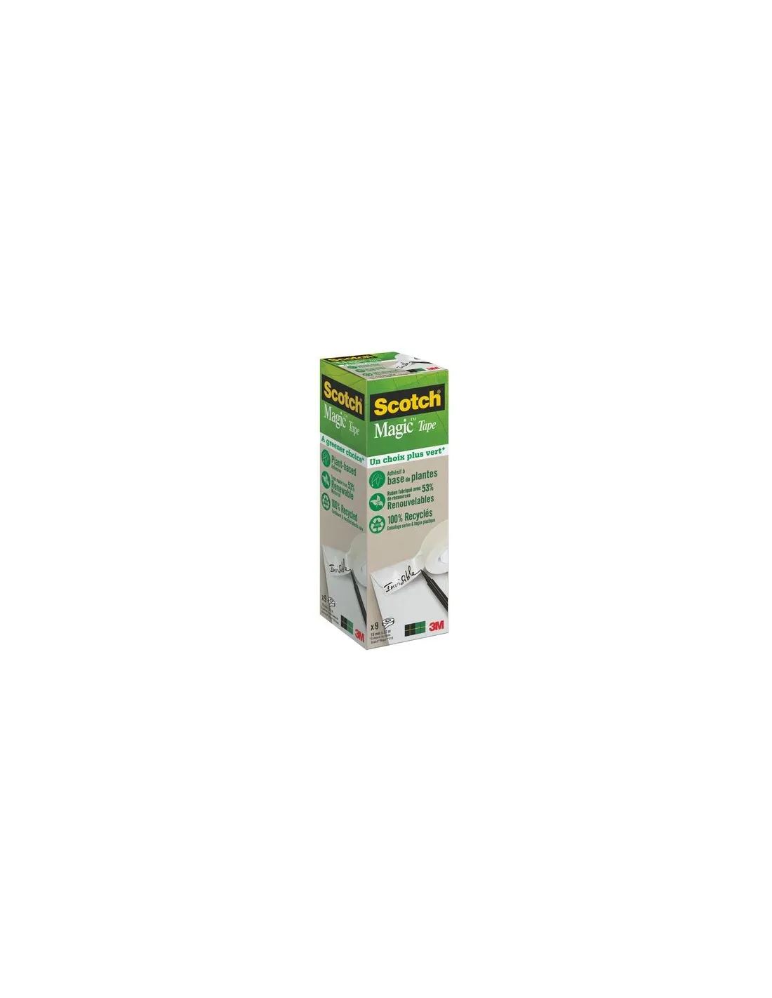 Pack de 9 cintas adhesivas Scotch Magic ecológicas. Embalaje y mandril 100% reciclado.Adhesivo sin disolventes. Dim: 19mm x 33m.Pack de 9 cintas adhesivas Scotch Magic ecológicas. Embalaje y mandril 100% reciclado.Adhesivo sin disolventes. Dim: 19mm x 33m.