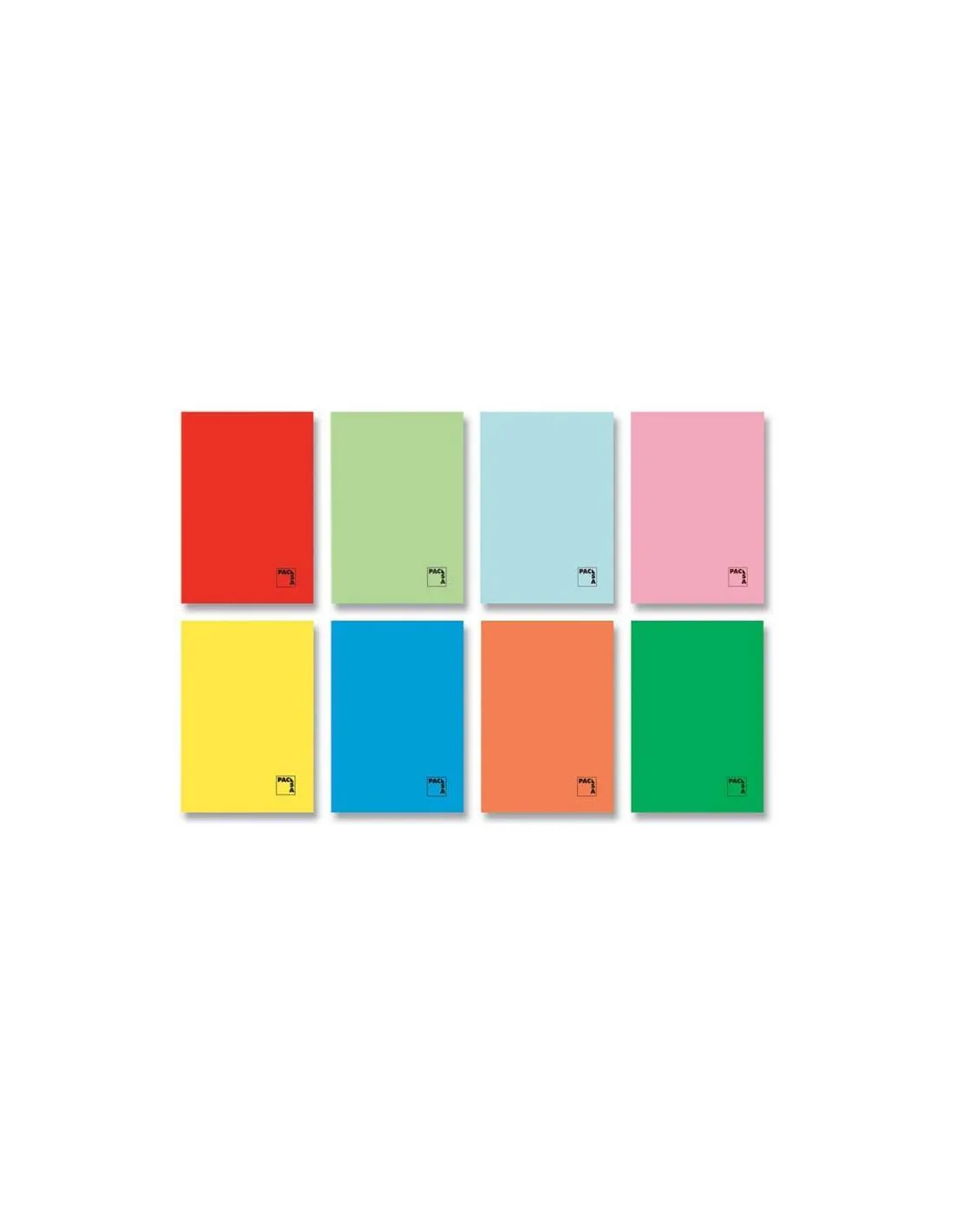 Libreta grapada folio Pacsa 50 hojas de 70 gr, 4 colores surtidos de forma aleatoria, tapas en cartulina gofrada.
