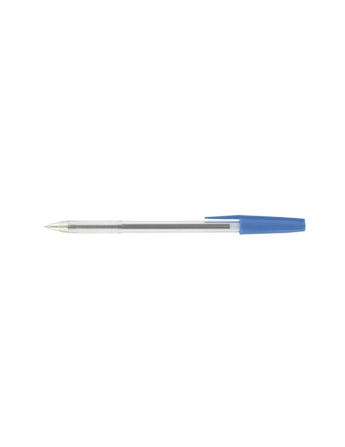Bolígrafo de escritura tradicional. Punta media 0,7 mm. Trazo 0.5 mm. Cuerpo transparente con capuchón del color de la tinta.