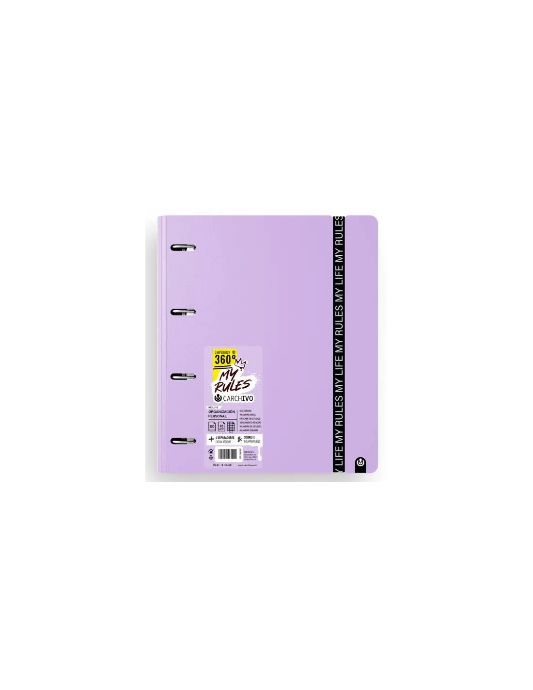 Además, ofrece hojas de organización como un calendario, tracker de notas, seguimiento de estudios (método pomodoro) y plannings semanales y anuales, para que tengas todo bajo control. Disponibles por color o en formato expositor. Características destacadas: Apertura 360º Carchivo®: Máxima practicidad, calidad y estilo. Diseño único: Goma tejida con el mensaje ""My Life, My Rules"". Colores vibrantes: Gris, deep blue, malva, jade y deep green. Accesorios nuevos: Sobre y separadores translúcidos con diseños exclusivos a la gama. Organización de asignaturas: Calendario, seguimiento de notas, tracker de estudios con el método pomodoro, planning semanal/anual. Edición limitada.