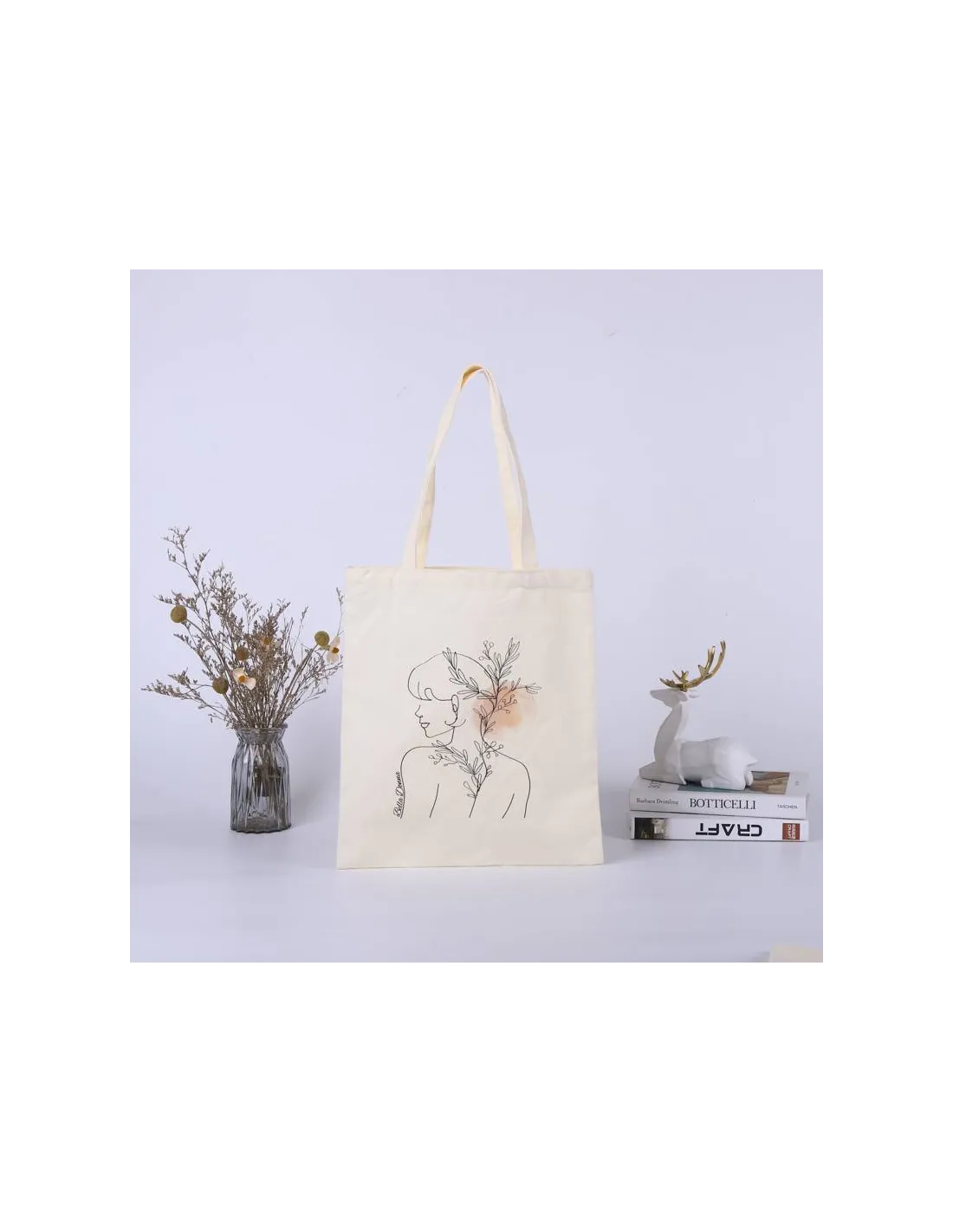 Bolsa de tela Canvas 40x35 cm color natural con asa larga para colgar en el hombro diseño Donna.
