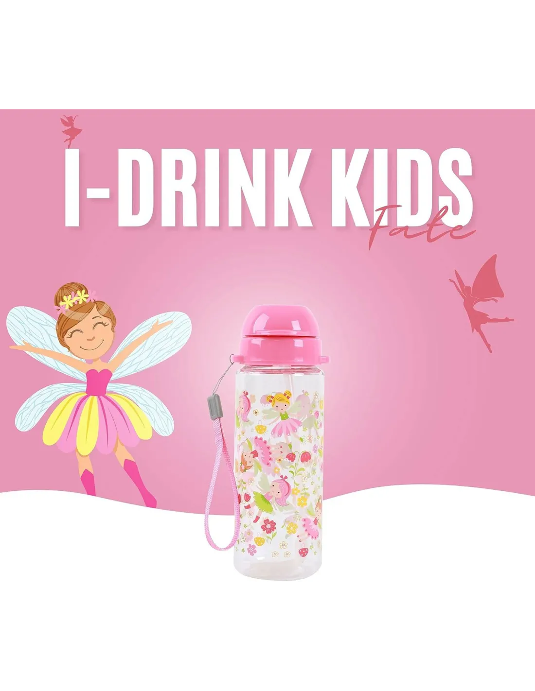 Botella de agua 400 ml para niños con diseños inferiores con pajita, sin BPA, reciclable (FAIRY)