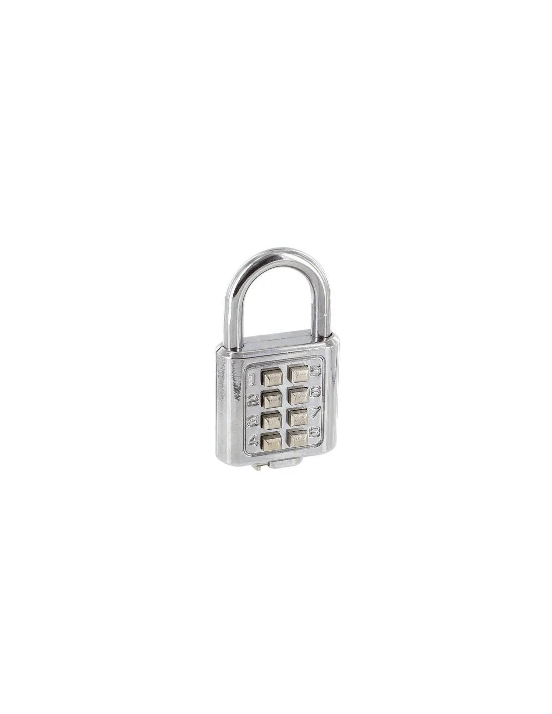 Combinación digital programada. Asa y cuerpo de acero niquelado. Ancho 35mm.Candado con código