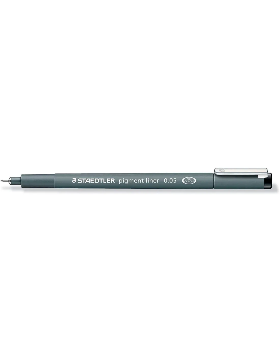 Rotulador calibrado Pigment Liner Staedtler para escribir, esbozar y dibujar con punta engazada en metal. Ideal para usar con regla y plantillas. Tinta pigmentada indeleble de secado rápido, resistente al agua y a al luz. Tinta negra.Puede ser abierto hasta 18 horas sin secarse (test ISO 554). Disponibles en punta 0,05-0,1-0,2-0,3-0,4-0,5-0,6-0,7-0,8