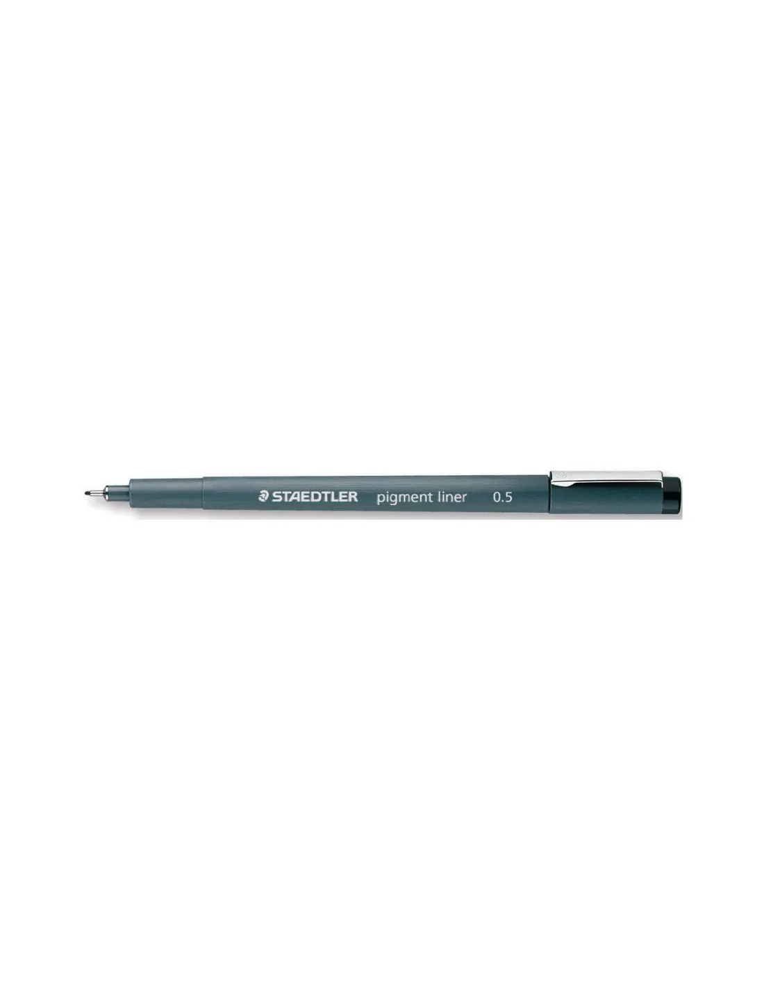 Rotulador calibrado Pigment Liner Staedtler para escribir, esbozar y dibujar con punta engazada en metal. Ideal para usar con regla y plantillas. Tinta pigmentada indeleble de secado rápido, resistente al agua y a al luz. Tinta negra.Puede ser abierto hasta 18 horas sin secarse (test ISO 554). Disponibles en punta 0,05-0,1-0,2-0,3-0,4-0,5-0,6-0,7-0,8