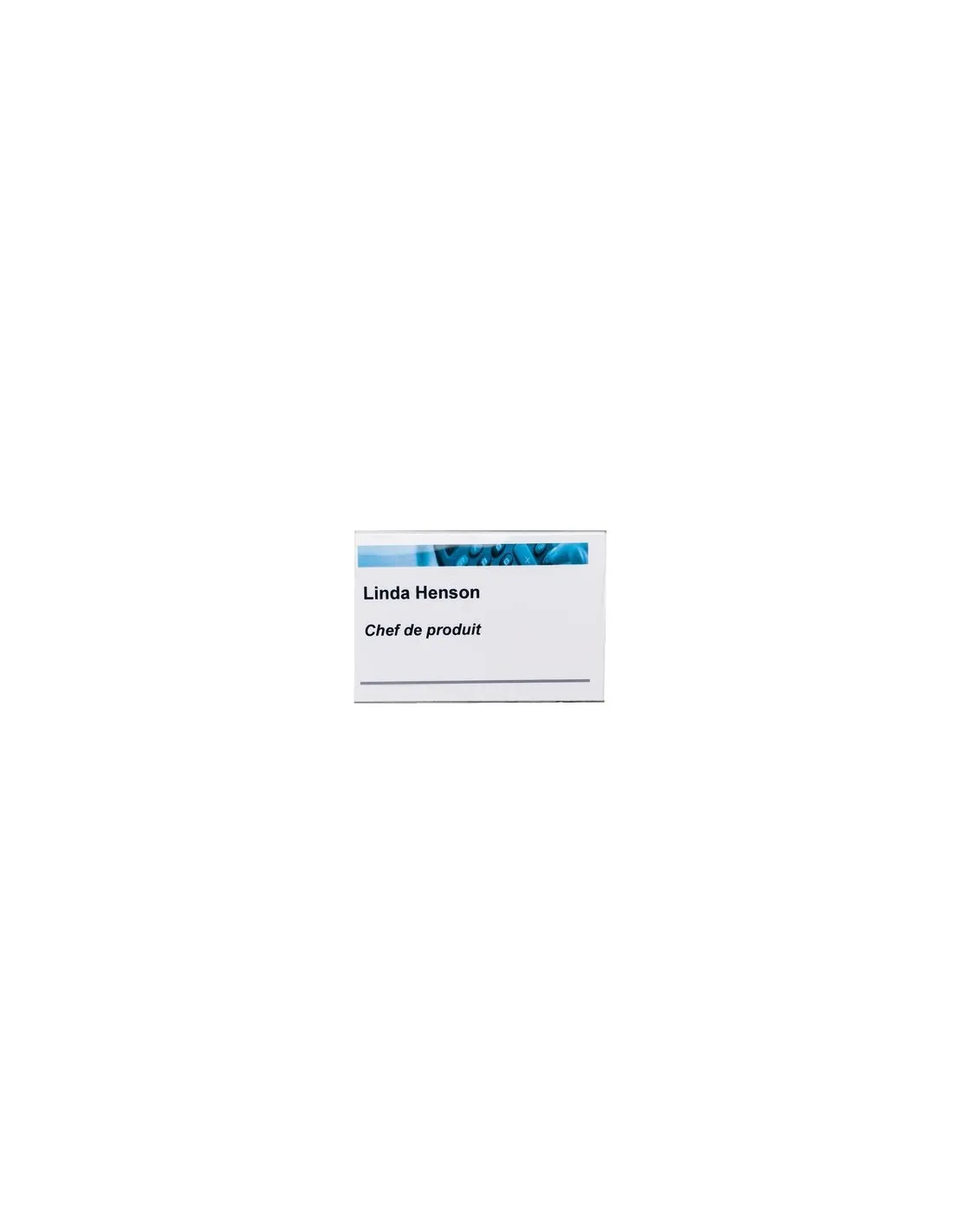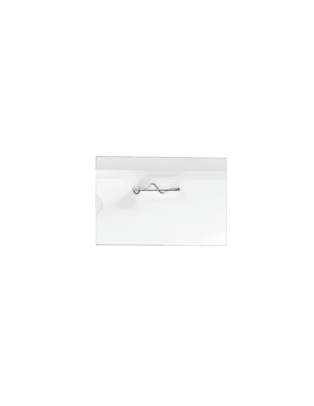 Identificador en polipropileno rígido transparente. Fijación imperdible metálico. Formato 60 x 90 mm. Tarjetas personalizables incluidas en hoja A4 . Paquete de 100