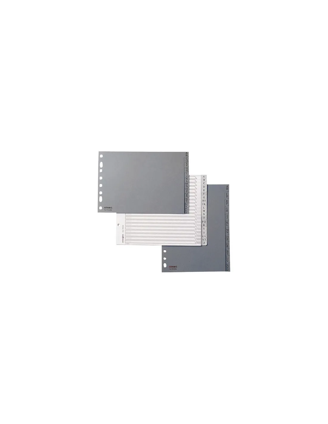 Formato: Cuarto apaisado. Tipo: Alfabéticos. Anillas: 8. Galga: 0,12. Separadores: 20.Juego 20 separadores A-Z 8 anillas cuarto apaisado