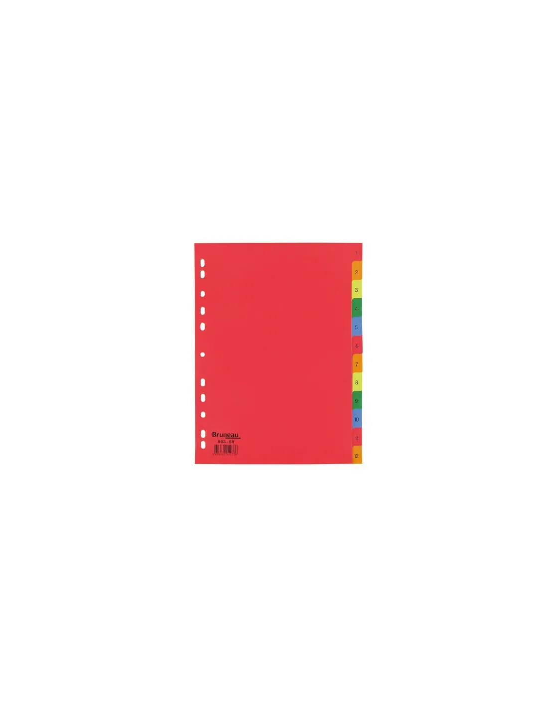 Perforación universal. Excelente relación calidad/precio. Elección de materiales, formatos y colores. Separadores numéricos,12 divisiones multicolores.Juego separadores numericos 12 divisiones color A4 JMB