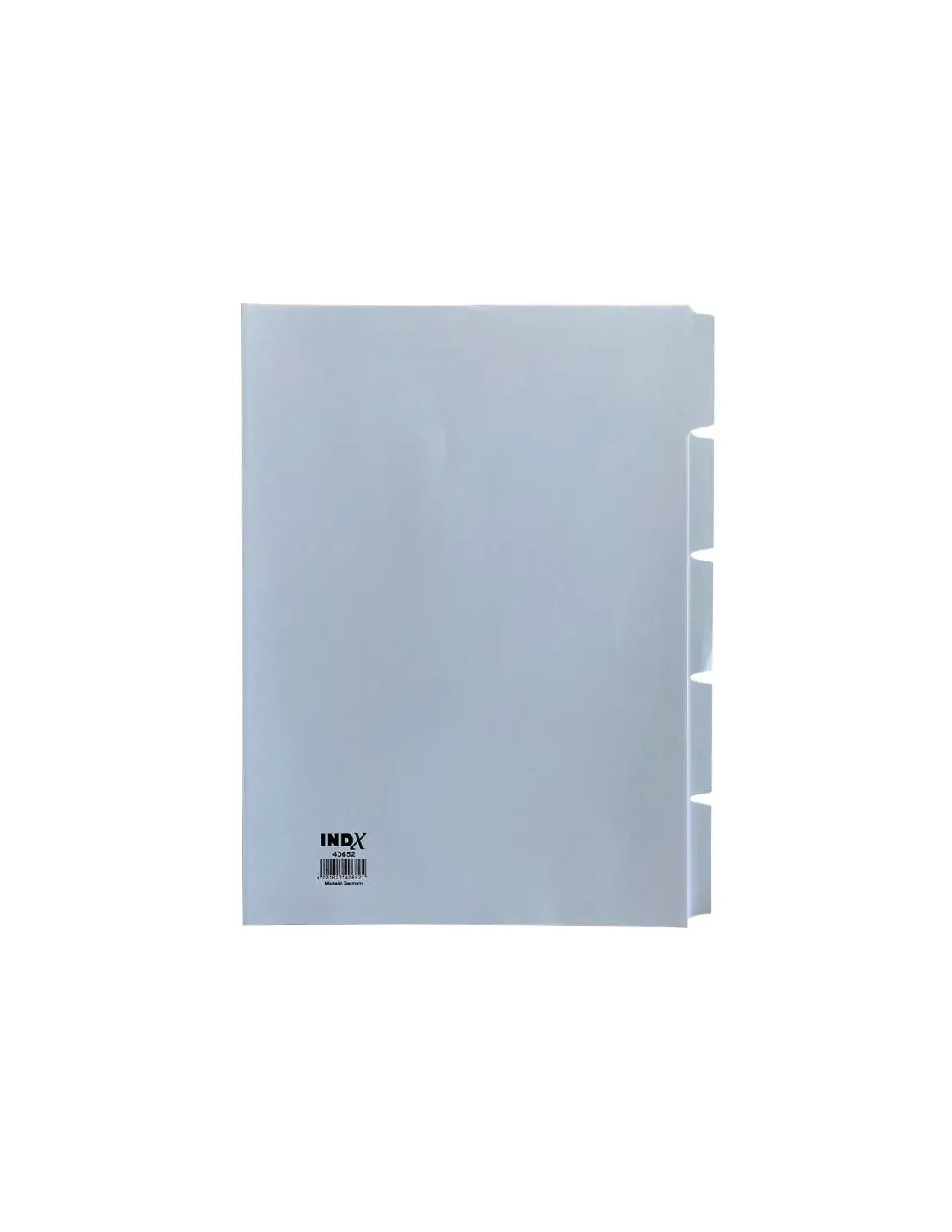 Separadores blancos de cartulina de 180 g. Formato A4. 5 divisiones. Sin perforaciones.