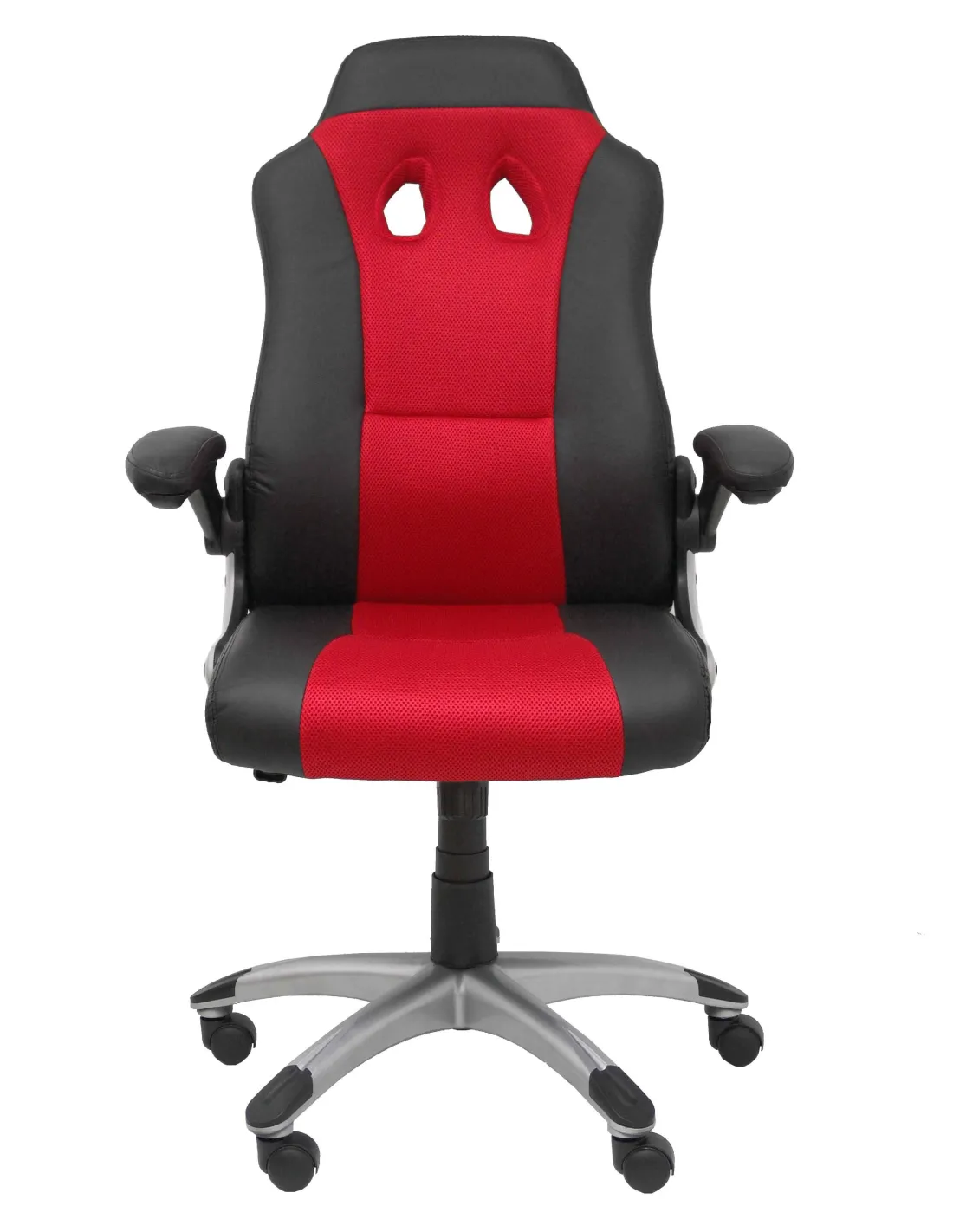 Detalles técnicos Respaldo ergonómico y acolchado para una mayor adaptabilidad a la espalda Asiento ergonómico y acolchado para una mayor comodidad del usuario Asiento y respaldo tapizados en tejido SIMILPIEL color negro y gris Relleno de alta calidad, espuma dura y cómoda Brazos retractiles incluidos