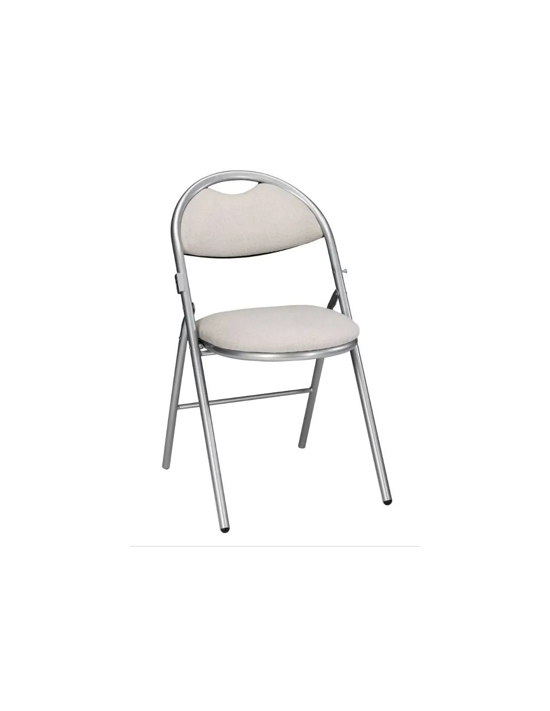 Silla plegable tapizada en Tejido 100 % poliéster ignífugo resistente a cigarrillos y cerillas. Base con tubos de metal Ø 25 mm lacado epoxi aluminio.