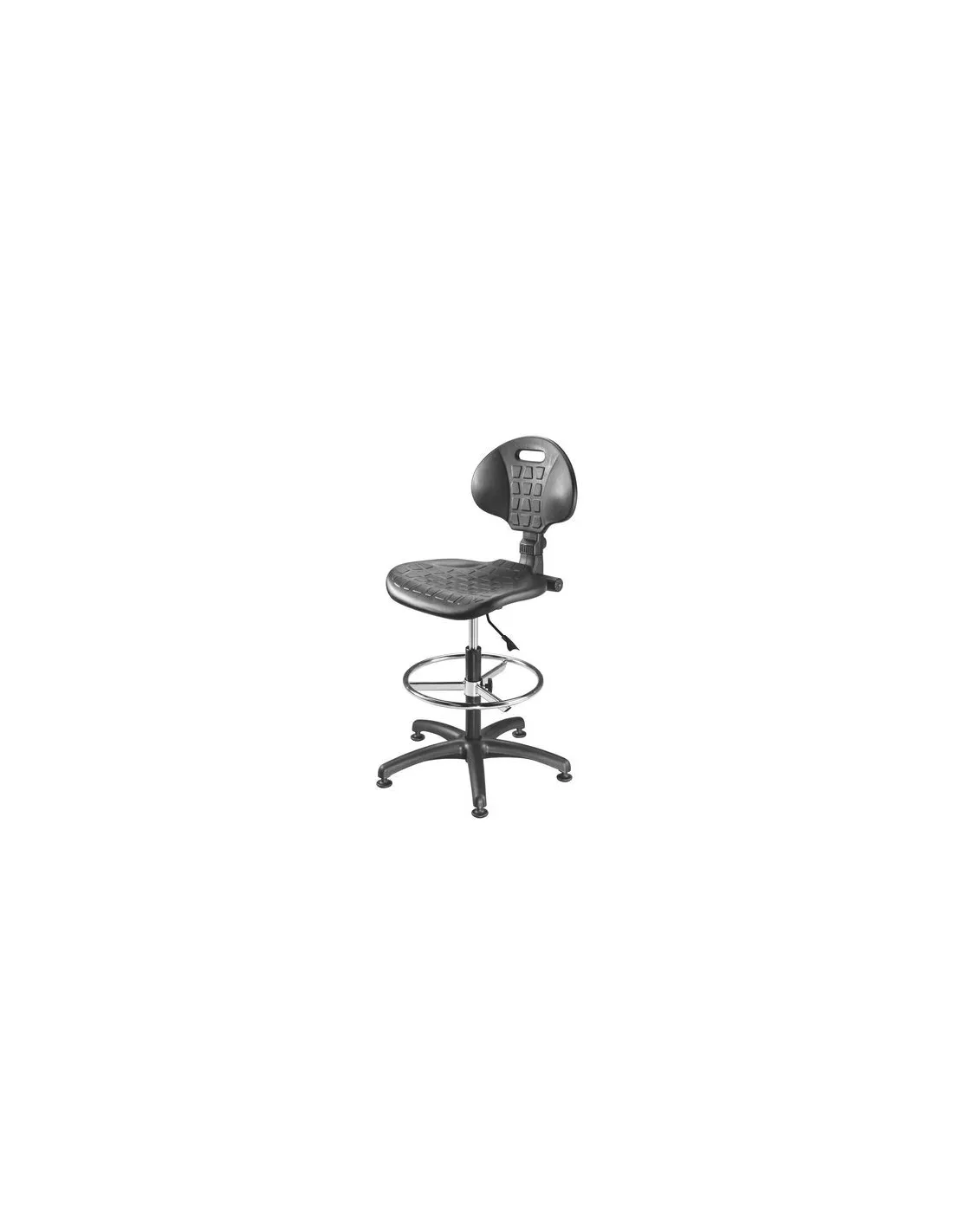 Silla taller Tech Pro poliuretano Contacto permanente Material : asiento y respaldo espuma de poliuretano. Molde anatomico antideslizante. Patas de seguridad de nilon. Reposapies metal cromado regulable en altura. Medidas: Asiento 47 x fon 43 cm regulable en altura de 57 a 82 cm. Respaldo alt 31 cm regulable en profundidad y en altura con piston neumatico con amortiguador. Mecanismo contacto permanente" "Silla taller Tech Pro poliuretano Contacto permanente Silla Tech Pro Contacto permanente regulable de 57 a 82 cm