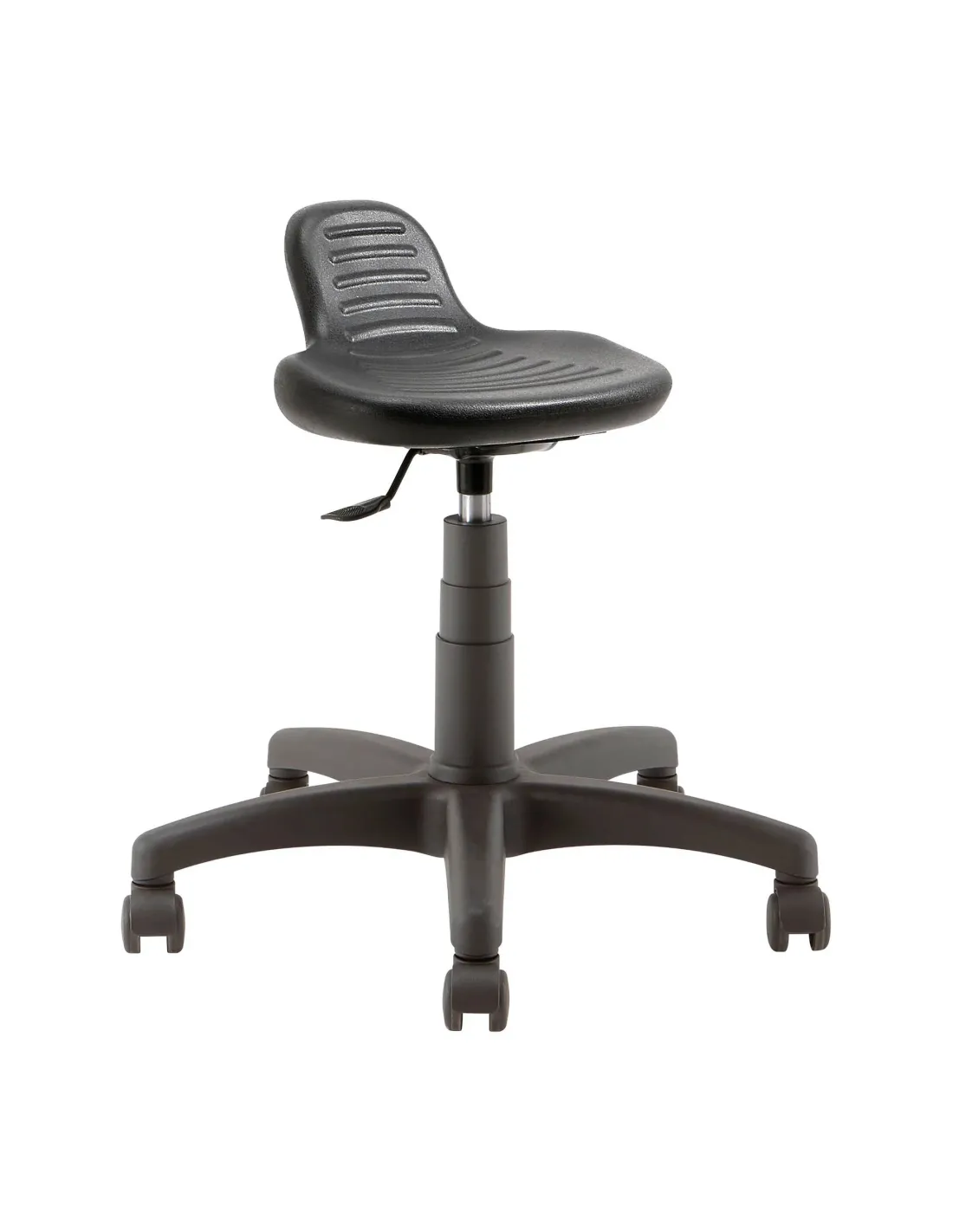 El taburete técnico permite disponer de un cómodo asiento de poliuretano tipo bipedestación, la silla taburete tiene una estructura reforzada que le permite aceptar un usuario con un peso máximo de 100 kg. Su asiento y respaldo están fabricados en polipropileno macizo de color negro.