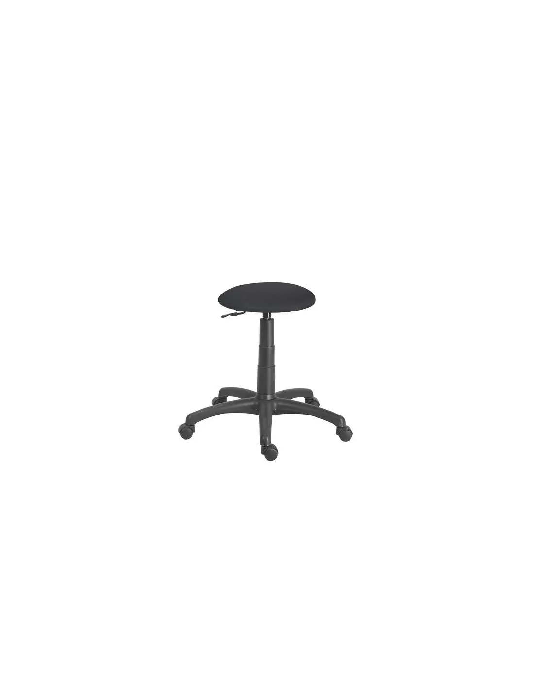 Taburete con ruedas office 3 estandar negro Taburete con ruedas con asiento acolchado con revestimiento tejido 100% poliéster. Pata de nailon regulable en altura con ruedas. Relleno: densidad asiento 40 kg/m³, Medidas: asiento 38 cm de diámetro. Regulable en atura de 45 a 58 cm.