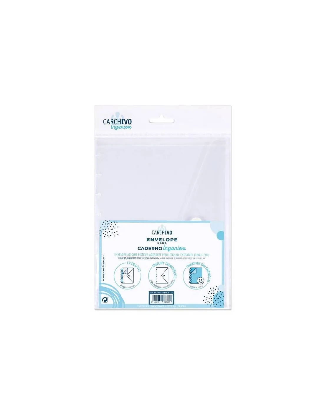 Sobre plástico polipropileno de 200 micras con doble bolsillo, sobre plástico extraible para cuadernos Ingeniox tamaño A5 168 x 217 mm, ahora si dispones de una libreta Ingeniox de Carchivo la puedes personalizar a tu gusto.