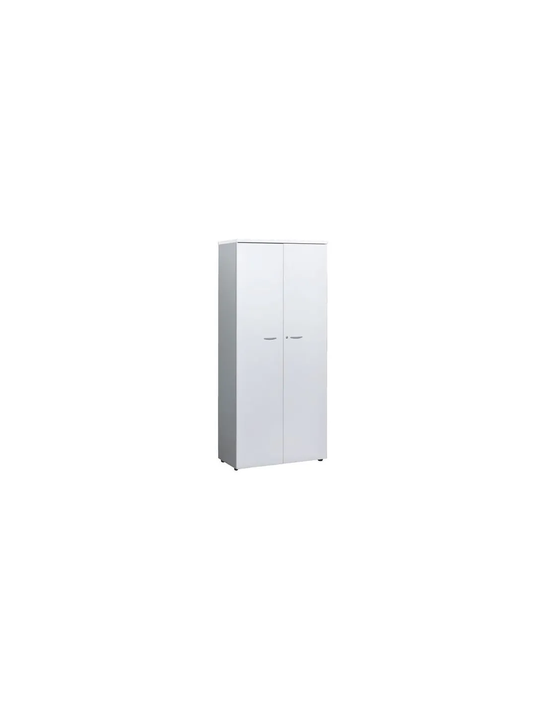 Equipamiento: Puertas batientes con cerradura ( 2 llaves incluidas) . Tiradores de plastico color aluminio. 4 baldas ( 1 fija y 3 regulables en altura). Medidas : Alt 200 x An 90 x Fon 45 cm."Armario alto 200x90x45 squadra blanco