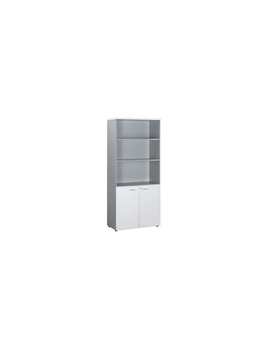 Parte baja : Puertas batientes con cerradura ( 2 llaves incluidas) . Tiradores de plastico color aluminio. 1 balada regulable en altura.