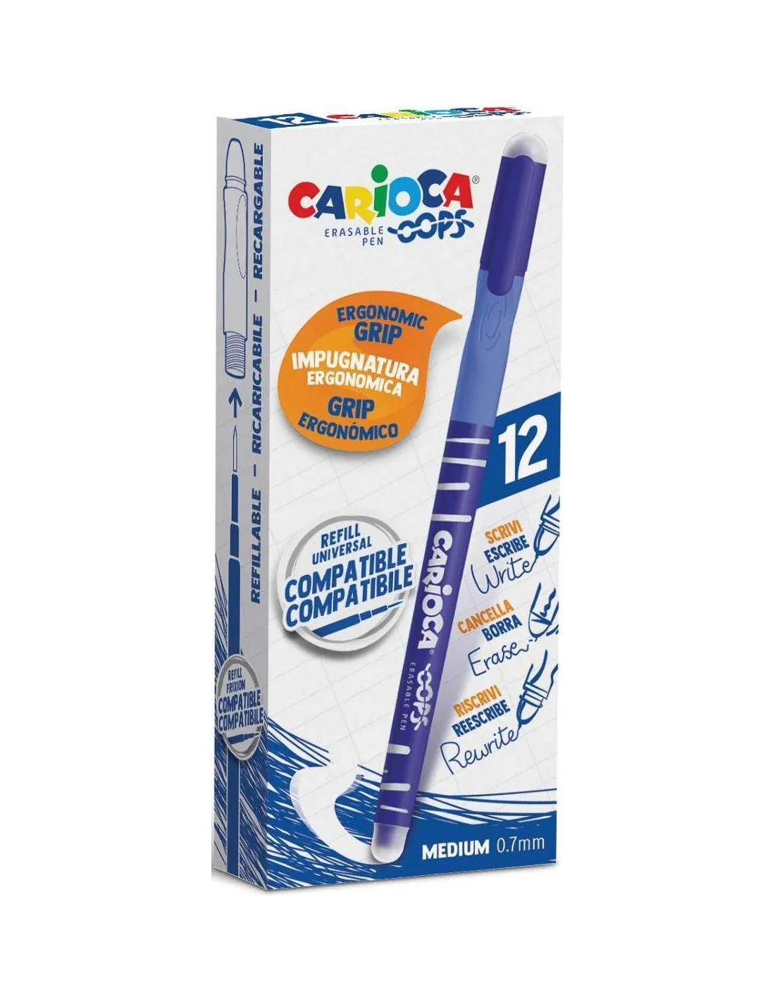 Boligrafo borrable Carioca Oops ergonómico trazo medio de 0,7mm