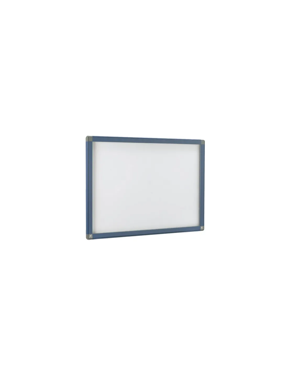 Cuadro perfilado de alumino lacado poliéster. 5 colores para elegir. Esquinas redondeadas, aspecto acero. Fondo metal prelacado gris (RAL 9002) Seguridad: Bisagras invertibles integradas en el marco y cerradura con doble cierre para mayor seguridad.Vitrina exterior 18 hojas gris