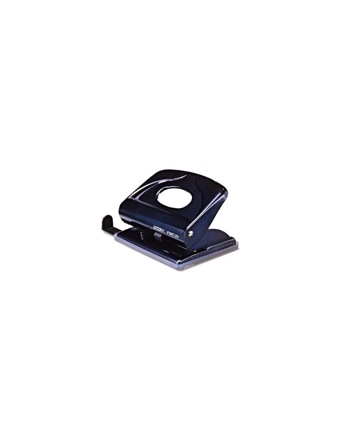 FC20: Perforadora para 20 hojas con empuñadura en plástico ABS reforzado y caucho TPE. BTaladro FC20 2 taladros negro,Perforadora para 20 hojas con empuñadura en plástico ABS reforzado y caucho TPE. Base metálica con una nueva cubierta de muy fácil apertura para el vaciado del confeti. Marca central y guía para el papel.