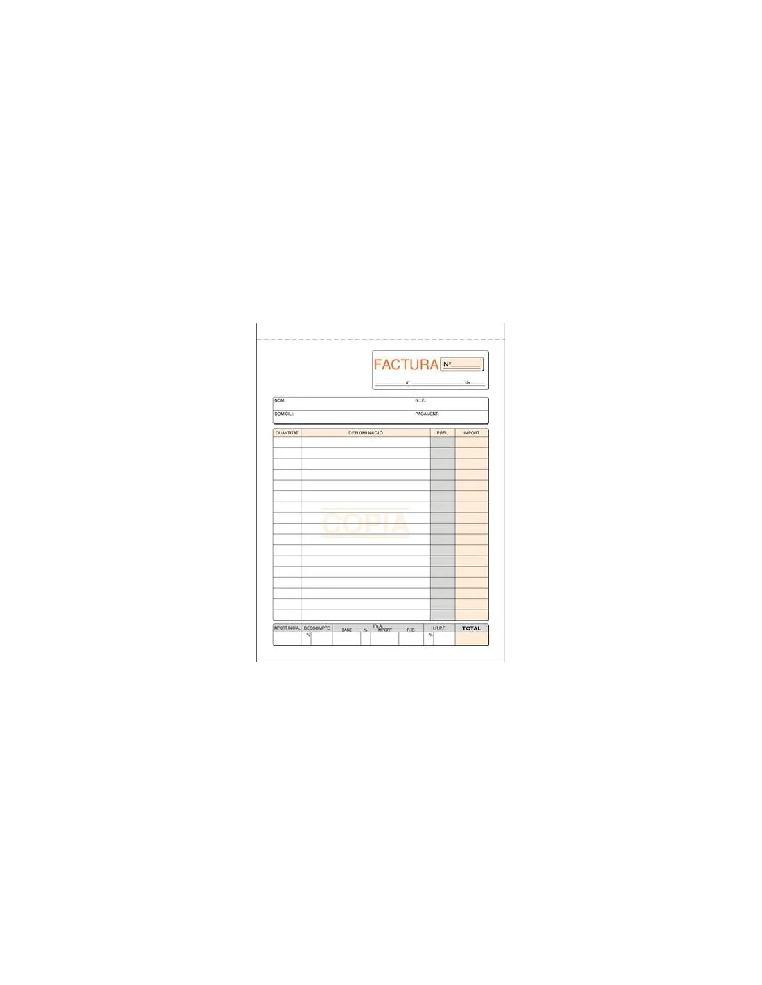 Transcripción sin carbón original + 1 copia. Formato 150 x 210. Modelo naturalTalonario factura 150x210 mm duplicado natural catala