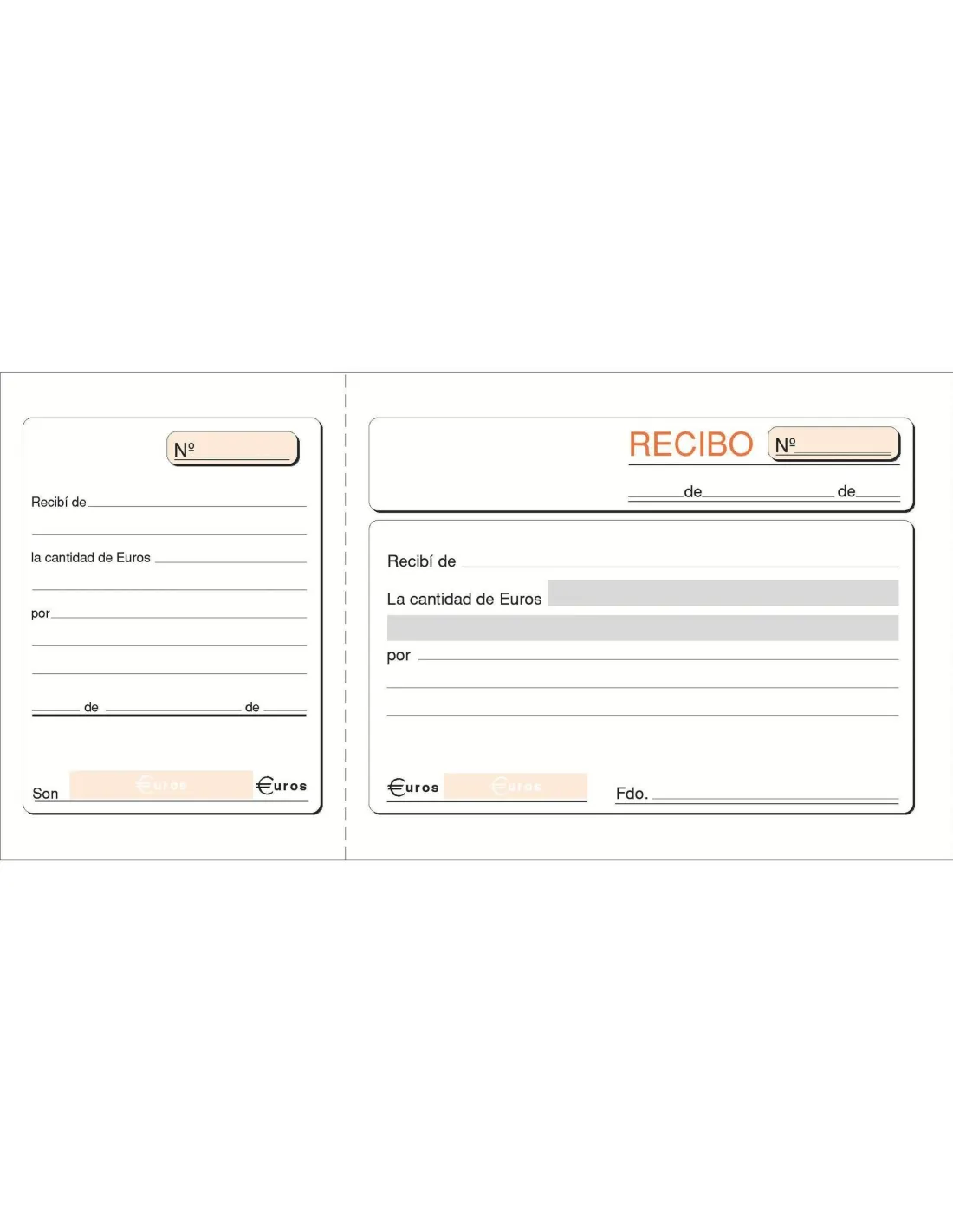 Talonario recibo con matriz 210 x 105 Castellano