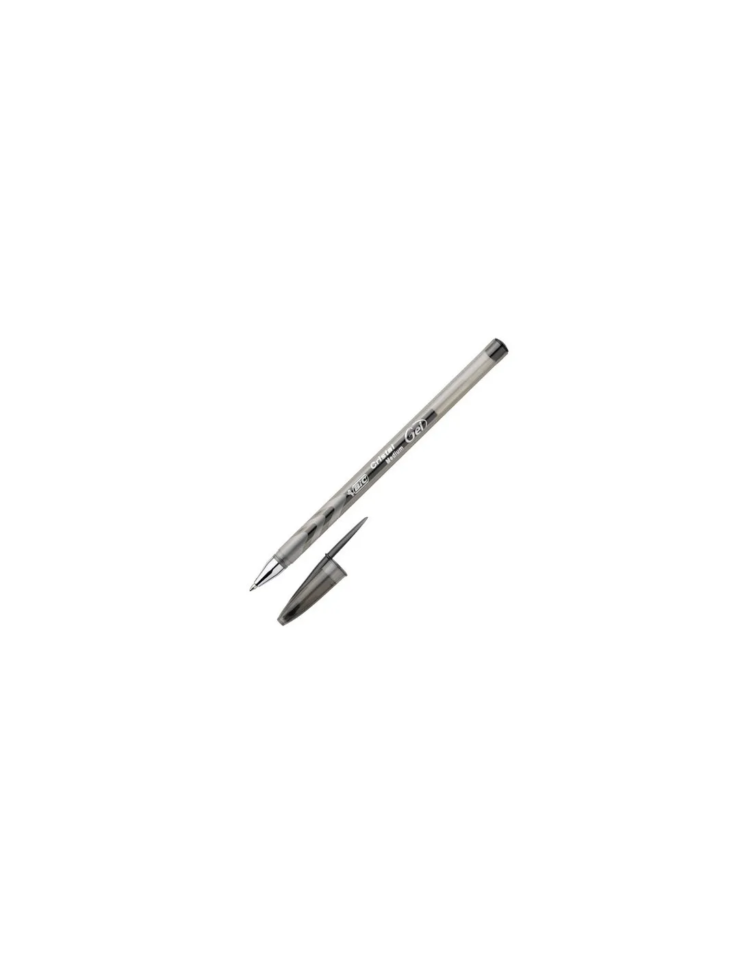 BIC cristal con tinta de gel. Con punta cromada de 0,5mm, tinta visible y en tres colores. Color: Negro.Roller Bic Cristal Gel. Con capuchón. Punta metálica 0.5 mm. Caja 20 unidades. Nivel de tinta visible.