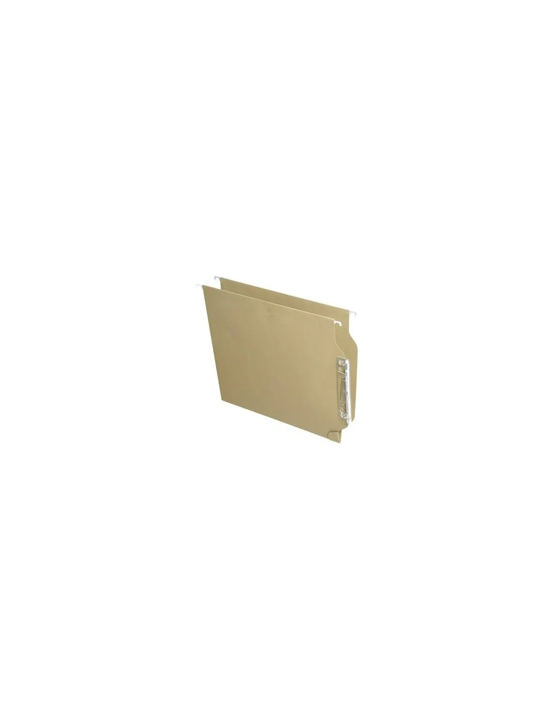 Caja con 25 carpetas colgantes Kraf, Incluyen visor de 140 mm con etiqueta para identificación. Lomo en V. Papel kraft de 220 g/m2. Formato: DIN A4. Medidas: 274 x 335 mm. Paquete de 25 uds.