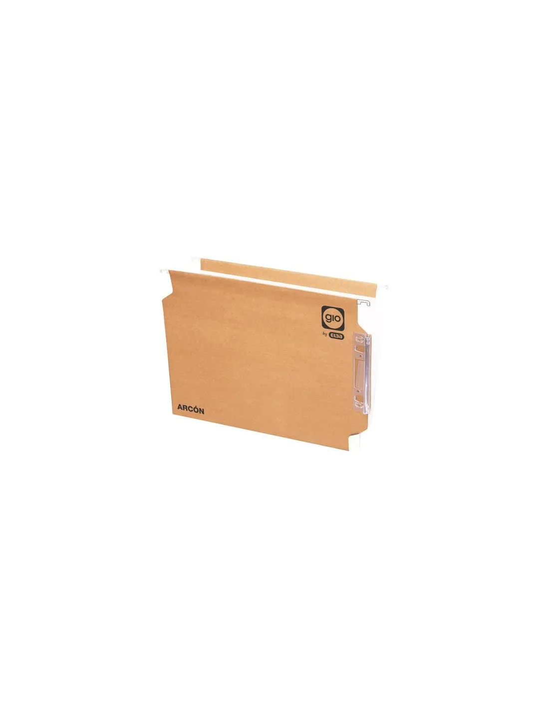 Carpeta fabricada en kraft bicolor de 240 g. Formato Folio. Visor lateral de 130 mm. Varilla de acero. Incluye etiquetas. Lomo normal en V.Carpeta colgante fabricada en kraft bicolor de 240 g. Formato Folio. Visor lateral de 130 mm. Varilla de acero. Incluye etiquetas. Lomo normal en V. Las medidas 280x365mm (365mm entre ejes)